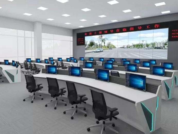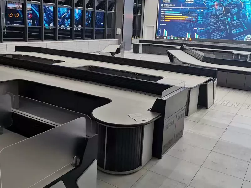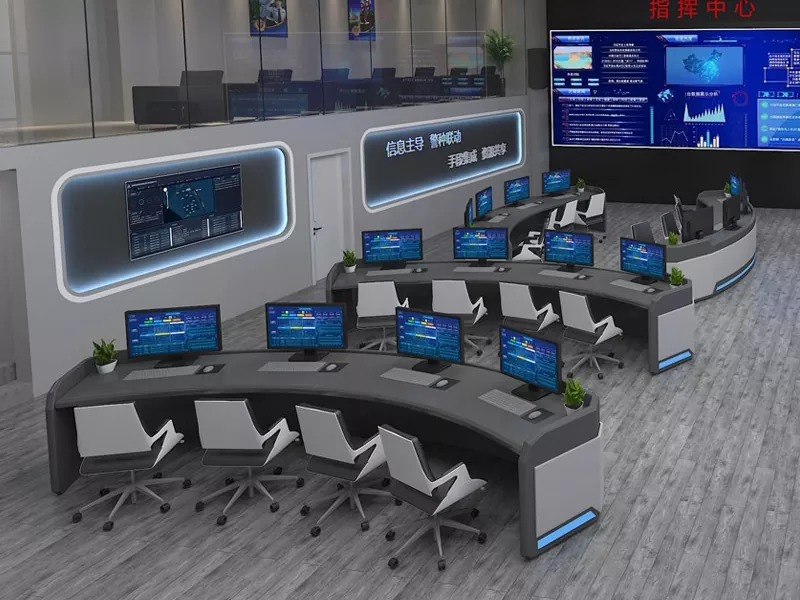 2.Struktur & Ukuran: Pilih desain lurus, berbentuk L, berbentuk U, atau khusus berdasarkan ruang pusat komando dan kebutuhan operasional, sehingga menyisakan ruang yang cukup untuk peralatan dan personel.